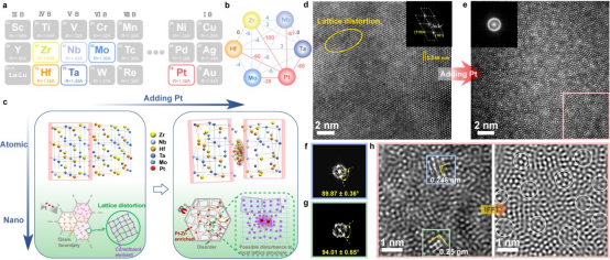 Prof. Weitao Zhengs Team at the School of Materials Science and Engineering of Jilin University has recently made important progress in the field of high-entropy alloys (HEAs) by synthesizing a new form in HEA family, paracrystalline HEA, which consists entirely of crystalline medium-range ordered (MRO) structures (as paracrystalline basic units). Such a novel HEA nanostructure both strengthens the alloy substantially and opens up near-homogeneous plastic deformation behavior. The research results, titled "Pt-induced atomic-level tailoring towards paracrystalline high-entropy alloy," were published online on Feb. 11, 2023, in Nature Communications.