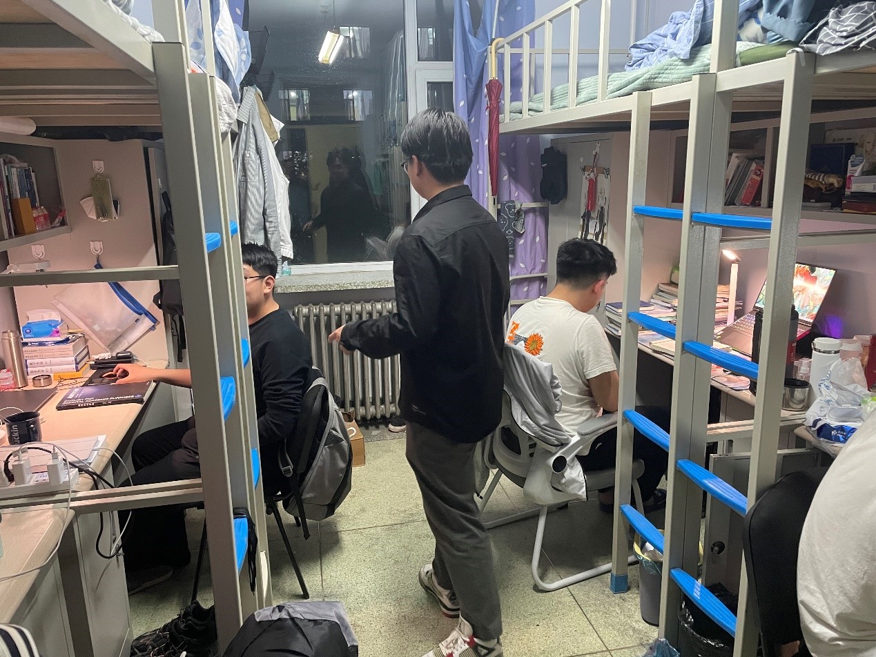 材料物理专业辅导员张晗禹在2023年5月3日晚走访学生寝室,督促同学们快速调整状态,迎接接下来的挑战。