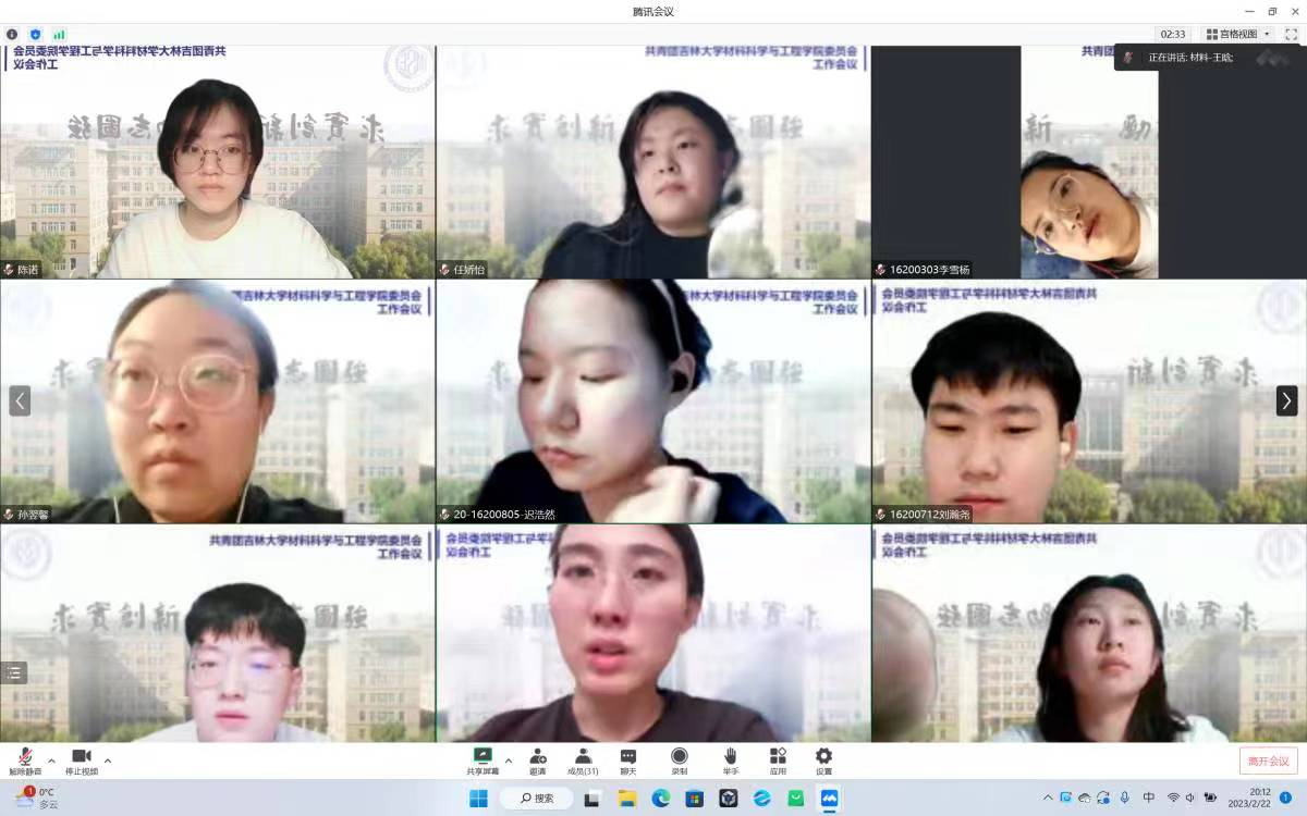 于2月22日线上召开本年度第一次学团工作会议,就2022-2023学年下学期学生活动的安排进行讨论。会议由团委负责人王晗老师主持,18禁